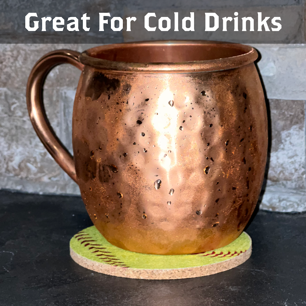 BRAND NEW ITEM! Be the first to pick up a 4-pack of cork softball coasters from Dugout Mugs. This order comes with 4 coasters and is decorated with a UV-printed design on one side.